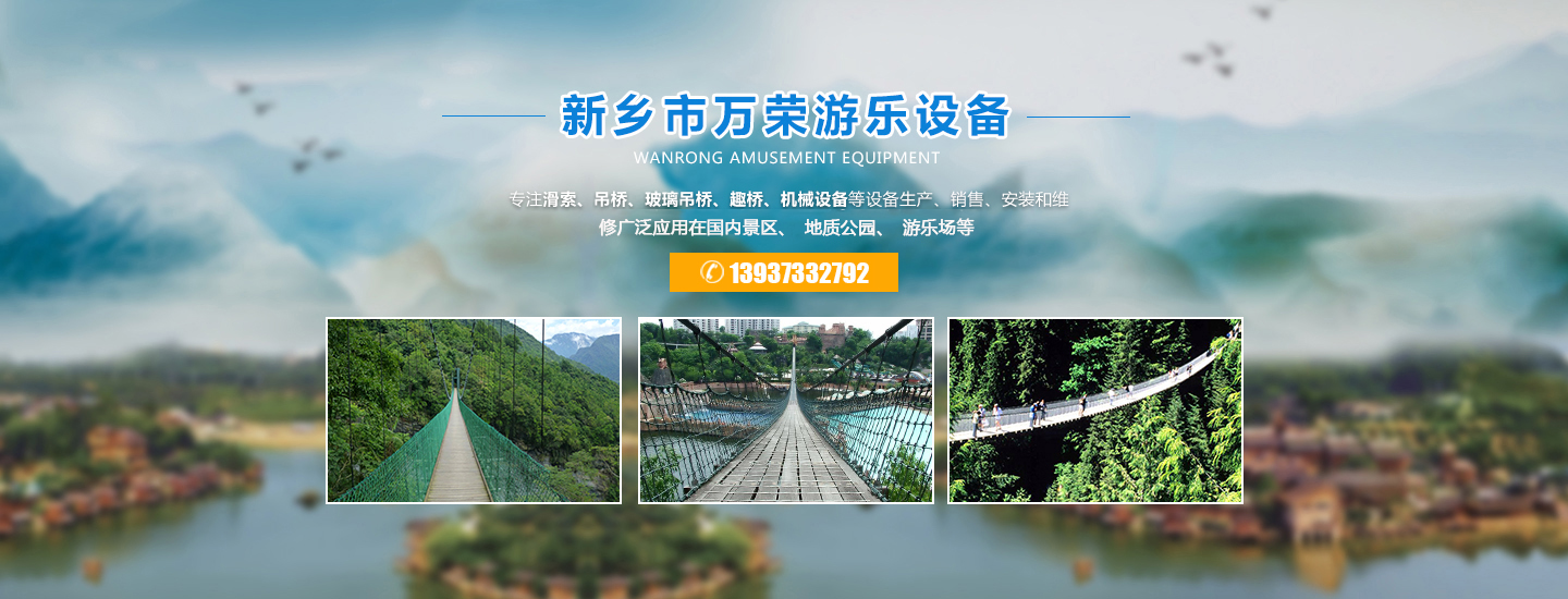 歡迎進(jìn)入新鄉(xiāng)市萬(wàn)榮機(jī)械有限公司官網(wǎng)!關(guān)鍵詞:玻璃水滑廠家,吊橋廠家, 景區(qū)吊橋價(jià)格, 滑索廠家, 游樂(lè)吊橋廠家, 玻璃吊橋, 防腐木吊橋廠商 ,景區(qū)吊橋, 滑索設(shè)備, 吊橋生產(chǎn)廠家, 吊橋多少錢(qián), 木板吊橋, 吊橋施工廠家